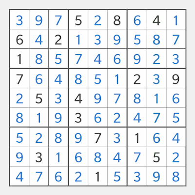 That's about all the terms you need to know to understand the Sudoku techniques I introduce in this blog. You may find the way I locate the cells different, my argue is that, firstly, it gets rid of the confusion of different ways of representing columns and rows (letters for rows, digits for columns or vice versa?); secondly, it's easier and faster to locate a cell within a box than to count it within a column or a row.